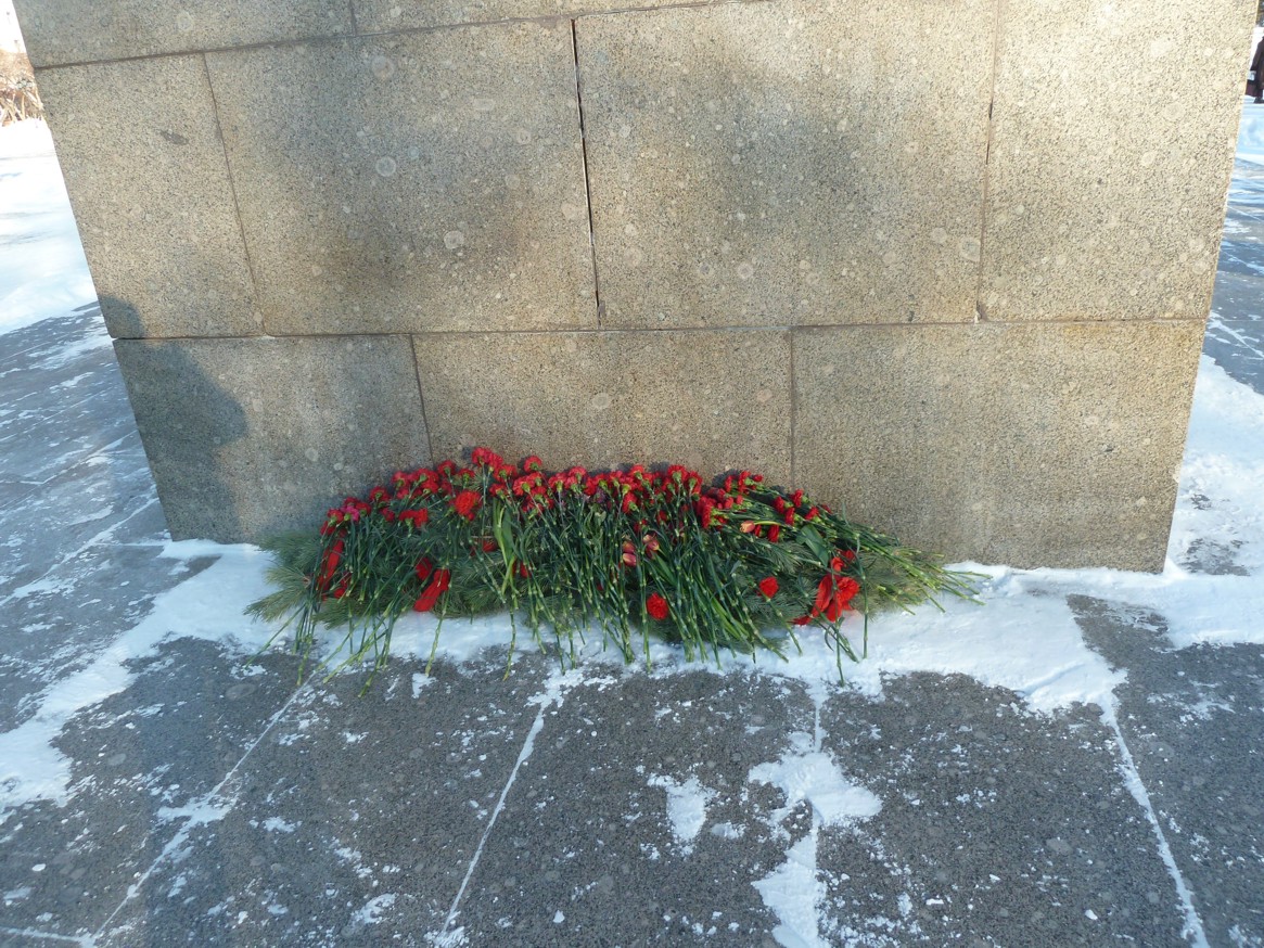 После этого под симфоническое исполнение легендарной песни «И вновь продолжается бой» к памятнику В.И. Ленину были возложены гирлянда и живые цветы. Нескончаемым потоком тянулись люди к памятнику. Многие несли в руках красные гвоздики – символ революции.