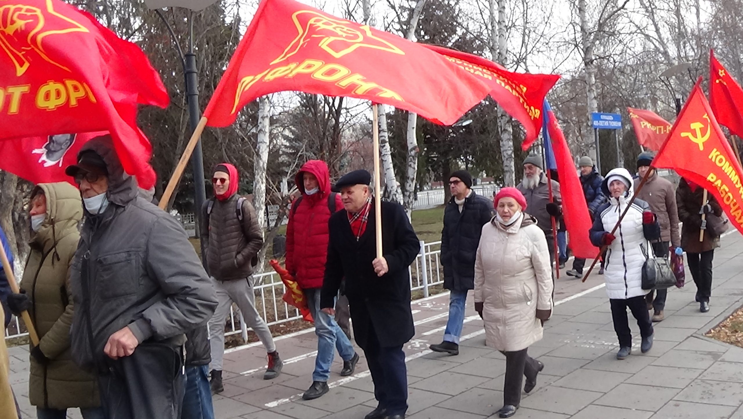 В 11 часов коммунисты РКРП(б)-КПСС и их сторонники пошли по тротуару ул. Республики. Полицейский пытался кричать в мегафон, что шествие незаконно и к участникам будут применены меры. Но никто не обратил внимание на эти угрозы. Конечно, было немного обидно идти по тротуару, а не по проезжей части, как это делалось всегда до того, как власти стали всё больше оказывать давление на трудящихся. Но всё равно колонна была весьма внушительной и по ходу шествия к ней присоединялись всё новые участники. Из проезжавших мимо автомобилей приветственно сигналили. Людям уже надоели вводимые всё более жесткие ограничения, они понимают, что только при Советской власти может быть достойная жизнь. Потому лозунги, выдвинутые Великим Октябрём 104 года назад, сегодня по-прежнему актуальны.