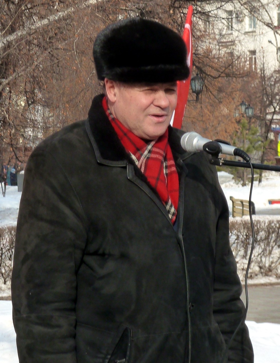 Секретарь Тюменского обкома РКРП-КПСС и обкома РОТ ФРОНТа А.К. Черепанов в своём выступлении отметил, что Рабоче-Крестьянская Красная армия была создана в тяжелейшее для страны и народа время для защиты молодой Советской республики. Красная Советская армия победила фашизм в годы Великой Отечественной войны, советские по духу люди борются сегодня с укрофашистами на Донбассе. Александр Киприянович от имени Центральных комитетов КПСС, РКРП и РОТ ФРОНТа поздравил всех с Днем Советской Армии и Военно-Морского флота и призвал поддержать жителей Донбасса в их борьбе с фашизмом. Он также сказал о митинге дальнобойщиков 26 февраля и призвал присутствующих поддержать их.