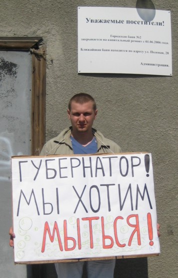 Жители г. Тюмени любят свой город, гордятся им и его архитектурными памятниками. Те же, кто хотел доказать свою любовь на деле, вышли на митинг к зданию бани. «Сегодня мы боремся не только за баню – сказал, открывая митинг, секретарь Тюменского обкома РКРП-КПСС по молодежной политике М.А. Савелков. – Мы боремся за все памятники архитектуры, которые хочет убрать из города буржуазная власть.