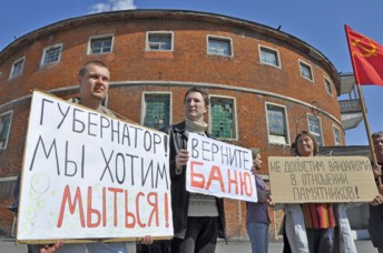 В то время, как развернулась нешуточная дискуссия о том, какова должна быть судьба бани на ул. Ленина, коммунисты РКРП-КПСС г. Тюмени при поддержке неравнодушных жителей города провели 8 июня митинг у самого здания бани.