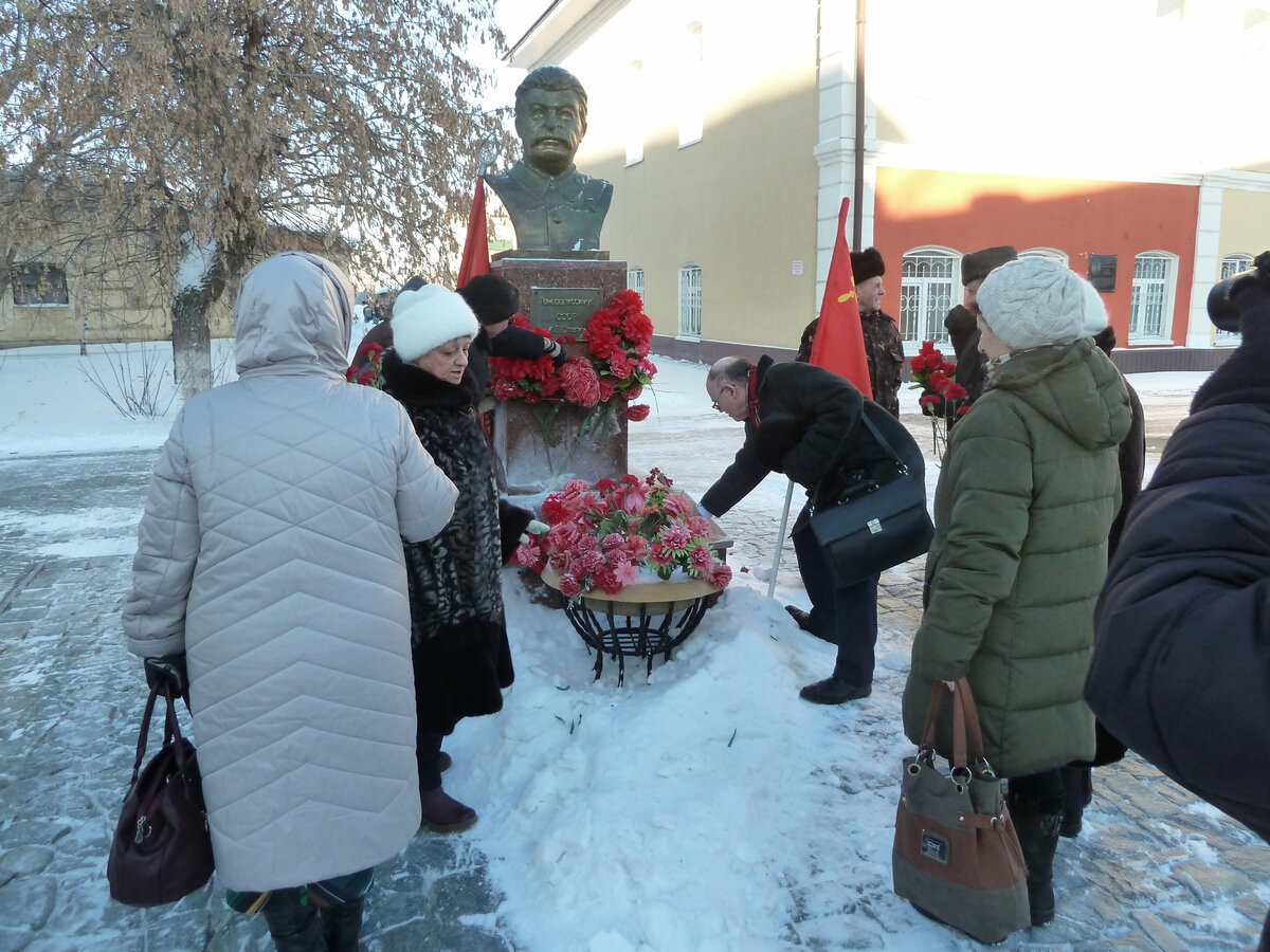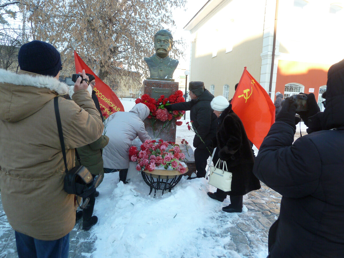 После завершения собрания, участники прошли на Октябрьскую площадь Ишима к памятнику И. В. Сталину для возложения цветов в честь 143-й годовщины со дня его рождения. Слово взял А.К. Черепанов который сказал о величии И.В. Сталина и его заслугах. Возложив цветы, участники сделали коллективную фотографию.